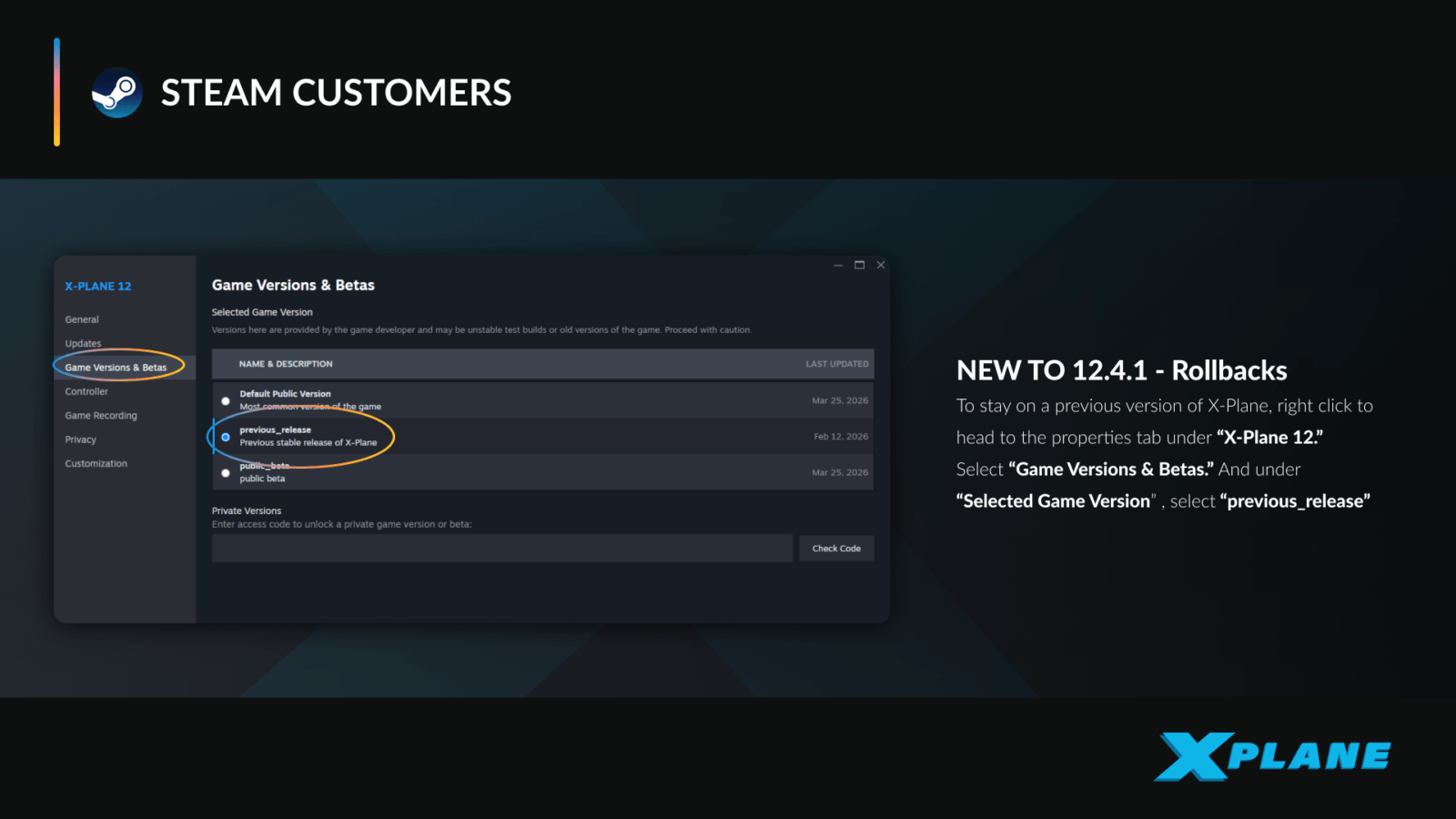 For the Steam users in the room, it is well known that you guys do not have the same special powers as LR Direct users. So starting with 12.4.1, you now have the option to rollback to the last previously available version.